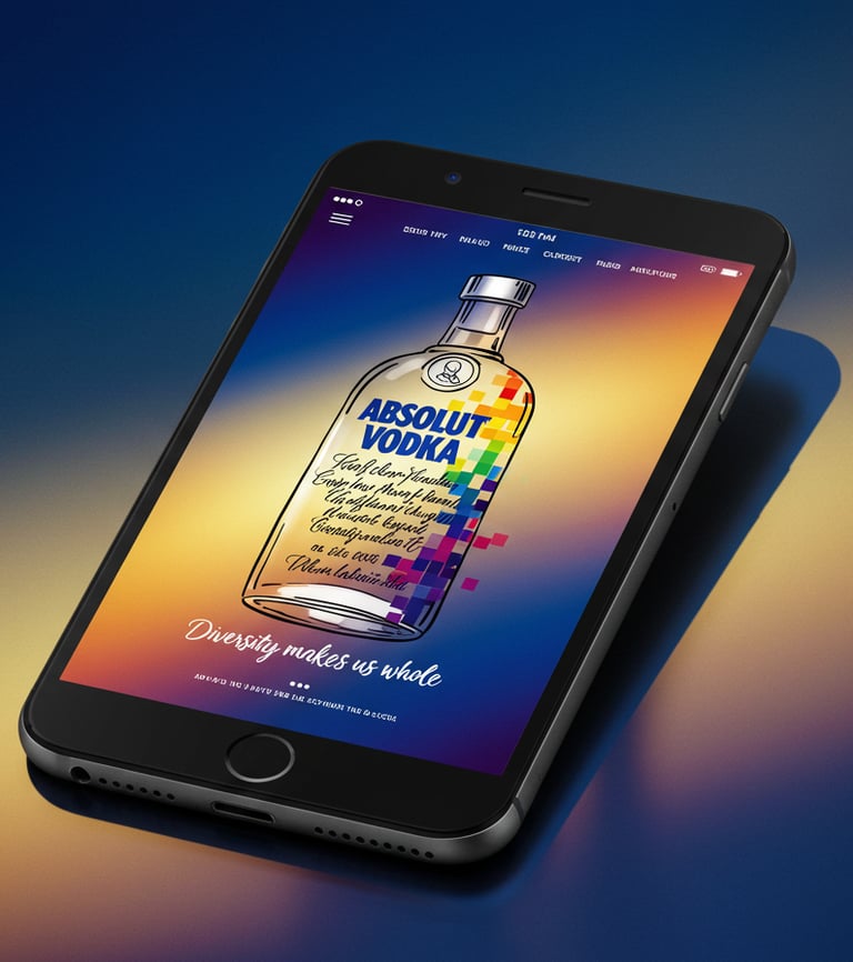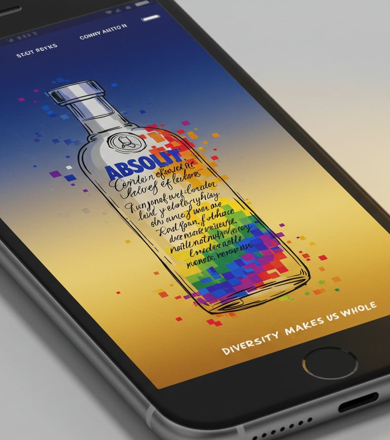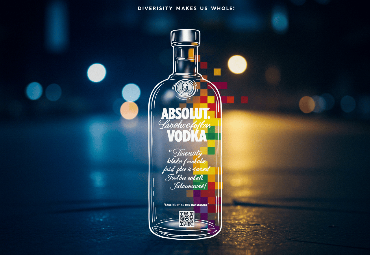 El diferenciador vs. otras campañas LGBTQ+: Absolut no dice "somos inclusivos". Dice "la diversidad nos completa a todos". Es un llamado a la acción personal, no una declaración de brand.