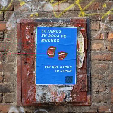 Flyers con QR: Sin logos evidentes, sin marca visible. Solo mensaje + código. La revelación viene después.