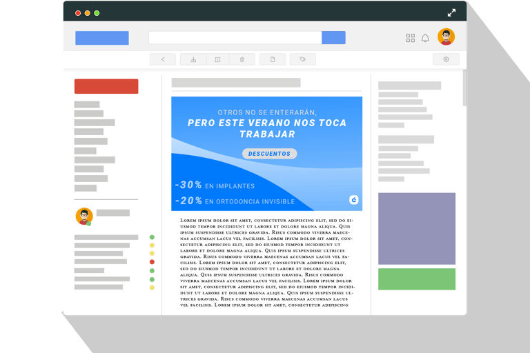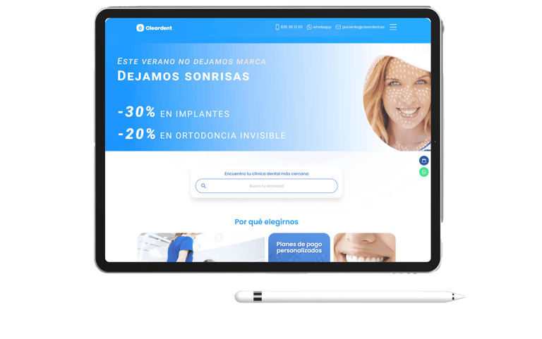 Landing web: Descuentos prominentes, CTA clara, narrativa que tranquiliza al paciente: "Mejora sin que se note".
