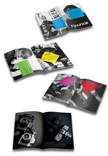 El desafío fue traducir "esencia de una cámara" en un lenguaje visual que funcionara en un folleto físico interactivo.